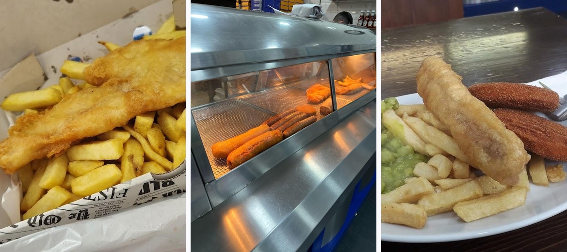 WhistleStop specializes in classic fish and chips, but also serves burgers, pies, chicken, and even dessert options like fried Mars bars.